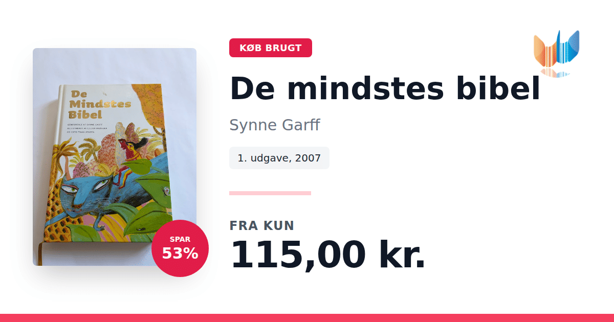 Lige nu kan du købe "De mindstes bibel" af Synne Garff til kun 115,00 kr. Du sparer hele 53% af nyprisen! Bogen du ser her er brugt, og i god stand. Vi har i øjeblikket kun et enkelt eksemplar til salg af "De mindstes bibel", så slå til mens du kan!