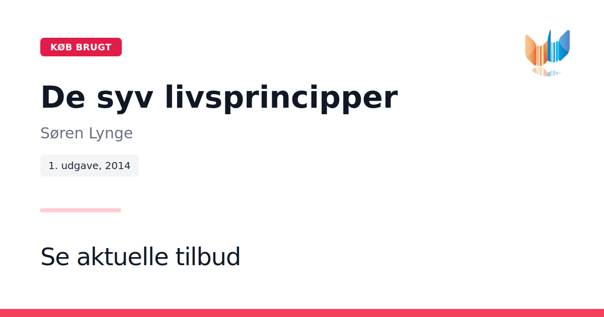 I "De syv livsprincipper" guider Søren Lynge læseren mod en enklere og gladere tilværelse med udgangspunkt i syv konkrete principper. Bogen præsenterer en tilgang, hvor man lærer at overvinde begrænsninger, mestre sine tanker og vælge glæde i hverdagen. Ved at fokusere på selvværd, selvdisciplin, og kontrollere egen vrede, opfordrer Lynge til at omfavne ærlighed overfor sig selv gennem erkendelse af egne fejl. Denne første udgave udgivet af Ungdomskultur i 2014, er en inspirerende og praktisk guide, der understøtter personlig udvikling og livsglæde.