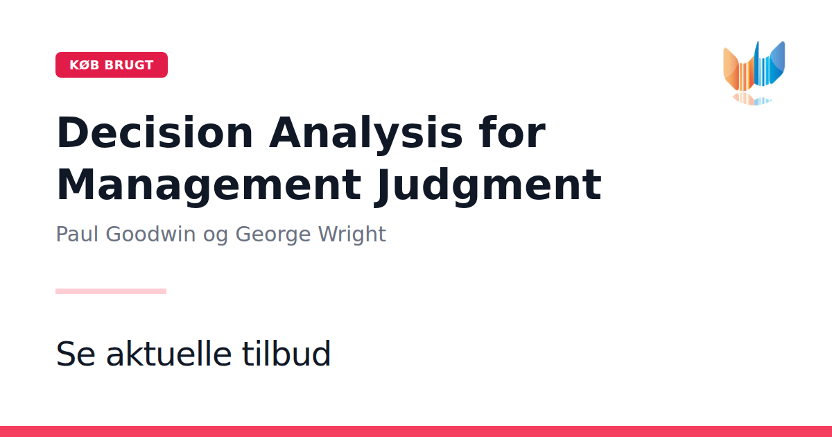 I en stadig mere kompleks verden er evnen til at træffe velinformerede beslutninger vigtigere end nogensinde. Decision Analysis for Management Judgment skiller sig ud ved sin brede tilgang til beslutningsanalyse og giver læseren et solidt overblik over metoder til at tackle komplekse ledelsesudfordringer. Bogen beskriver de psykologiske barrierer, der ofte hindrer lederes uafhængige vurderinger, og præsenterer en række beslutningsanalyseværktøjer, der hjælper med at undgå disse faldgruber. Metoderne forklares overskueligt og uden brug af matematisk notation, så indholdet bliver tilgængeligt for alle beslutningstagere. Denne fjerde udgave er gennemgribende revideret og ajourført med de nyeste udviklinger inden for feltet og indeholder en række opdateringer, der afspejler aktuelle tendenser og praksiseksempler.