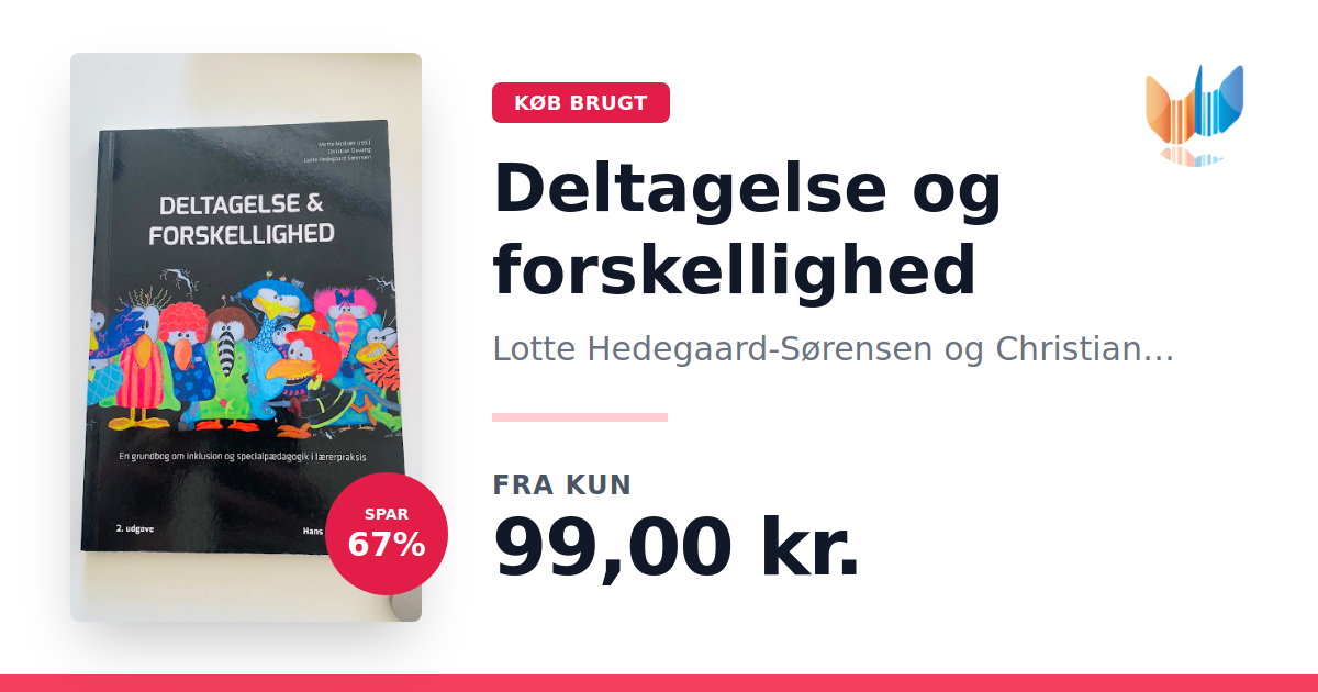 Deltagelse og forskellighed er en grundbog, der henvender sig til lærerstuderende med fokus på inklusion og specialpædagogik i folkeskolens praksis. Bogen kombinerer teoretiske perspektiver med konkrete metoder, der understøtter en nuanceret forståelse af, hvordan komplekse læringssituationer kan håndteres. Gennem observation, evaluering og refleksion af elevers deltagelse og læringsprofiler opfordres den studerende til at udvikle praktiske redskaber til arbejdet med inkluderende specialpædagogik. Med sin præsentation af central forskning og de pædagogiske rammer for inklusion skaber bogen et solidt fundament for den faglige udvikling. Anden udgave fra 2015, med 171 sider, giver en klar og overskuelig introduktion til, hvordan elev- og handleplaner udformes, samt hvordan kommunikation og samarbejde kan styrkes i skolen. Udgivet af Gyldendal, er Deltagelse og forskellighed et uundværligt redskab for fremtidens lærere.