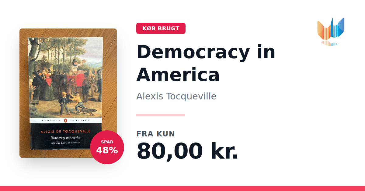 Lige nu kan du købe "Democracy in America" af Alexis Tocqueville til kun 80,00 kr. Du sparer hele 48% af nyprisen! Bogen du ser her er brugt, og i perfekt stand. Vi har i øjeblikket kun et enkelt eksemplar til salg af "Democracy in America", så slå til mens du kan!