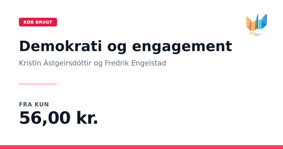 Lige nu kan du købe "Demokrati og engagement" af Kristín Ástgeirsdóttir og Fredrik Engelstad til kun 56,00 kr. Du sparer hele 71% af nyprisen! Bogen du ser her er brugt, og i perfekt stand. Vi har i øjeblikket kun et enkelt eksemplar til salg af "Demokrati og engagement", så slå til mens du kan!
