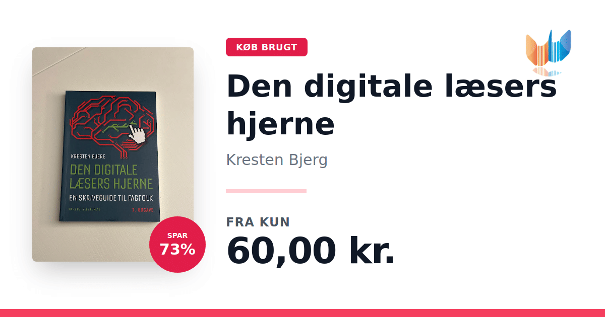 Den digitale læsers hjerne dykker ned i, hvordan vi bedst formidler fagligt indhold i digitale medier. For mange læsere er den trykte udgave en foretrukken oplevelse, da hjernen ofte har sværere ved at fokusere på digitale tekster. Denne bog sætter fokus på, hvordan man med 22 konkrete skriveråd skaber en tekst, der fanger læserens opmærksomhed – uanset om den læses på en skærm eller i papirformat. Bogen er inddelt i syv centrale kapitler, der hver især belyser forskellige sider af den digitale kommunikationssituation. I kapitlet "Det digitale potentiale" får du indsigt i, hvordan digitale medier både byder på muligheder og stiller krav til, hvordan vi kommunikerer. Herefter forklares i "Den digitale læsers hjerne", hvordan skriveanbefalingerne er forankret i resultater fra læseforskning og kognitiv sprogteori. I kapitlet "22 skriveråd" præsenteres rådene med mange illustrative eksempler, mens "Skriverådenes effekt" demonstrerer, hvordan rådene har vist sig effektive i to danske befolkningsundersøgelser. Yderligere byder bogen på kapitlerne "Skriveråd og tekstmodeller – oversigt" og "Tjeklisten", som hurtigt giver overblik og praktiske spørgsmål til din egen tekst. Afslutningsvis byder "En bog i bogen: VIVEs skriveguide" på et eksempel på, hvordan en stor forskningsinstitution formidler gode skriveprincipper til medarbejdere og forskere. Med sit fokus på at gøre faglig kommunikation mere tilgængelig og engagerende, er Den digitale læsers hjerne et vigtigt redskab for alle, der ønsker at styrke deres formidlingsevner i den digitale tidsalder.