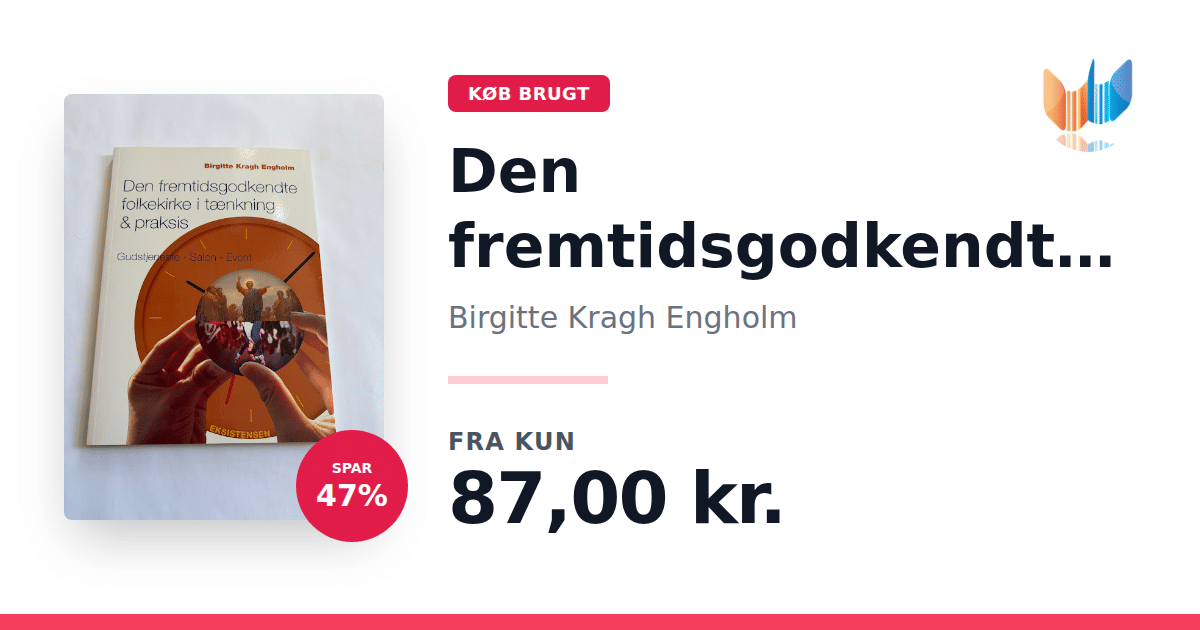 Lige nu kan du købe "Den fremtidsgodkendte folkekirke i tænkning & praksis" af Birgitte Kragh Engholm til kun 87,00 kr. Du sparer hele 47% af nyprisen! Bogen du ser her er brugt, og i perfekt stand. Vi har i øjeblikket kun et enkelt eksemplar til salg af "Den fremtidsgodkendte folkekirke i tænkning & praksis", så slå til mens du kan!