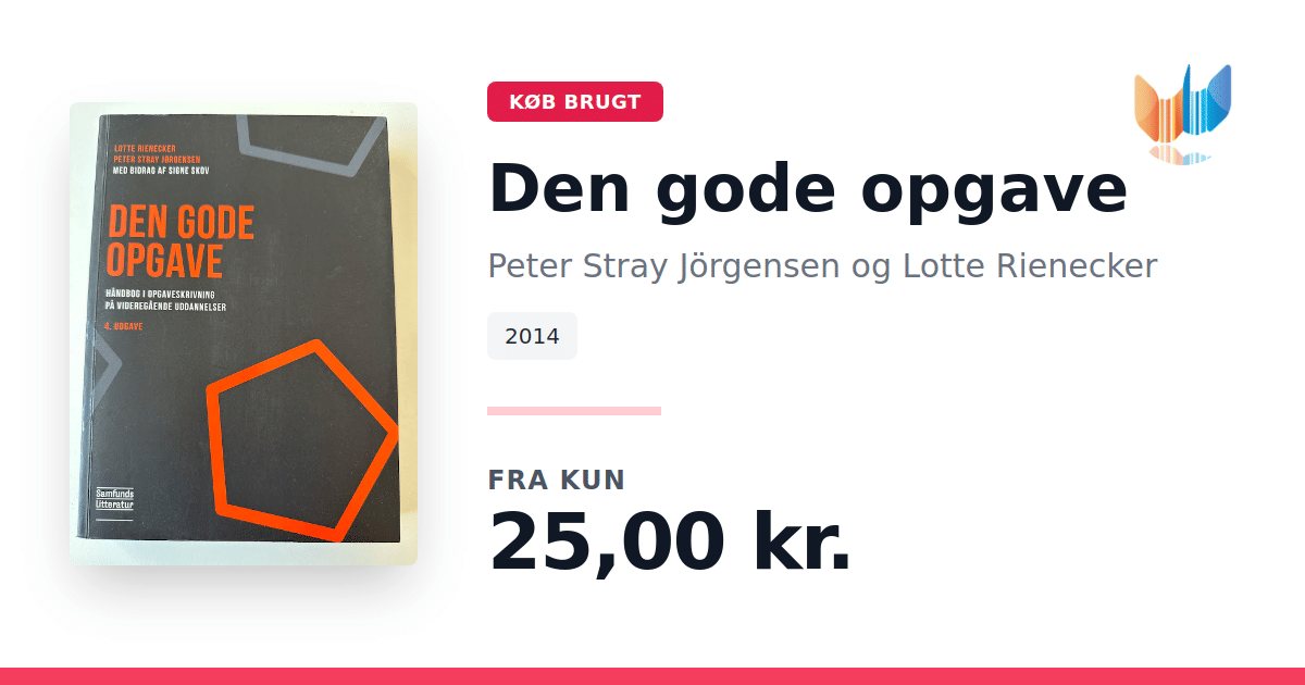 Lige nu kan du købe "Den gode opgave" af Peter Stray Jörgensen og Lotte Rienecker til kun 25,00 kr. Bogen du ser her er brugt, og i perfekt stand. Vi har i øjeblikket 40 eksemplarer til salg af "Den gode opgave", så husk at se de forskellige udgaver.