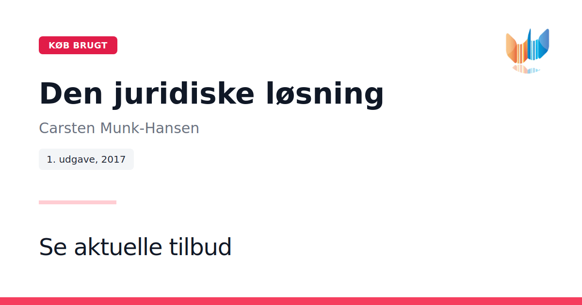 "Den juridiske løsning" er en grundlæggende introduktion til, hvordan juridiske problemstillinger analyseres og håndteres gennem beslutninger og afgørelser. Bogen redegør for den juridiske metode og giver læseren en systematisk indføring i de principper, der ligger til grund for retlige overvejelser og afgørelser. I første udgave udgivet i 2017 præsenteres emner som ret, regler og metode, loven, EU- og international ret samt lovfortolkning og retspraksis. Gennem et enkelt og tilgængeligt sprog får studerende og begyndere et solidt fundament i juridisk tænkning og kendskab til vigtige kilder og materiale, der understøtter den juridiske proces. Bogen kombinerer en kompakt fremstilling med en overskuelig struktur, der gør den velegnet til dem, der ønsker at opnå en overordnet forståelse for, hvordan juridiske beslutninger træffes – fra de formelle retskilder til de praktiske aspekter af juridisk anvendelse.