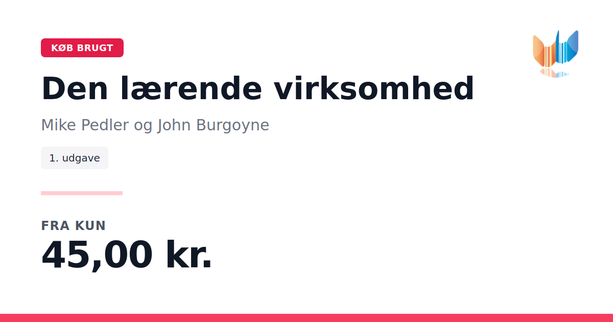 Lige nu kan du købe "Den lærende virksomhed" af Mike Pedler og John Burgoyne til kun 45,00 kr. Du sparer hele 89% af nyprisen! Bogen du ser her er brugt, og i god stand. Vi har i øjeblikket kun et enkelt eksemplar til salg af "Den lærende virksomhed", så slå til mens du kan!