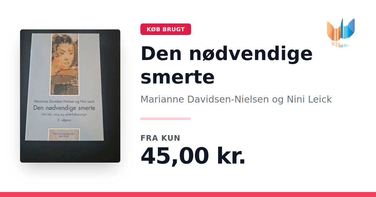 Lige nu kan du købe "Den nødvendige smerte" af Marianne Davidsen-Nielsen og Nini Leick til kun 45,00 kr. Bogen du ser her er brugt, og i god stand. Vi har i øjeblikket 2 eksemplarer til salg af "Den nødvendige smerte", så husk at se de forskellige udgaver.