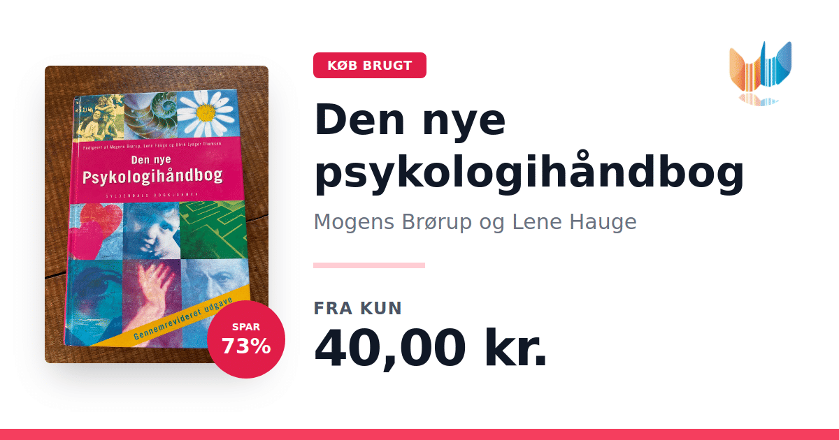 Lige nu kan du købe "Den nye psykologihåndbog" af Mogens Brørup og Lene Hauge til kun 40,00 kr. Du sparer hele 73% af nyprisen! Bogen du ser her er brugt, og i perfekt stand. Vi har i øjeblikket 7 eksemplarer til salg af "Den nye psykologihåndbog", så husk at se de forskellige udgaver.