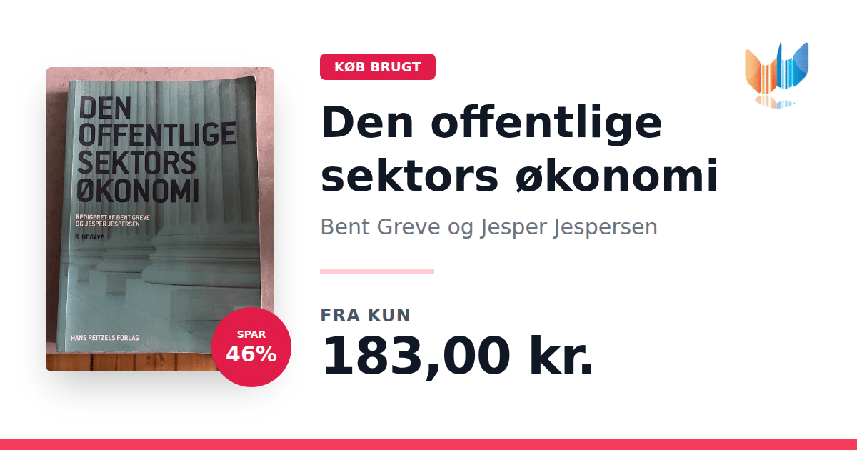 Lige nu kan du købe "Den offentlige sektors økonomi" af Bent Greve og Jesper Jespersen til kun 183,00 kr. Du sparer hele 46% af nyprisen! Bogen du ser her er brugt, og i perfekt stand. Vi har i øjeblikket 7 eksemplarer til salg af "Den offentlige sektors økonomi", så husk at se de forskellige udgaver.