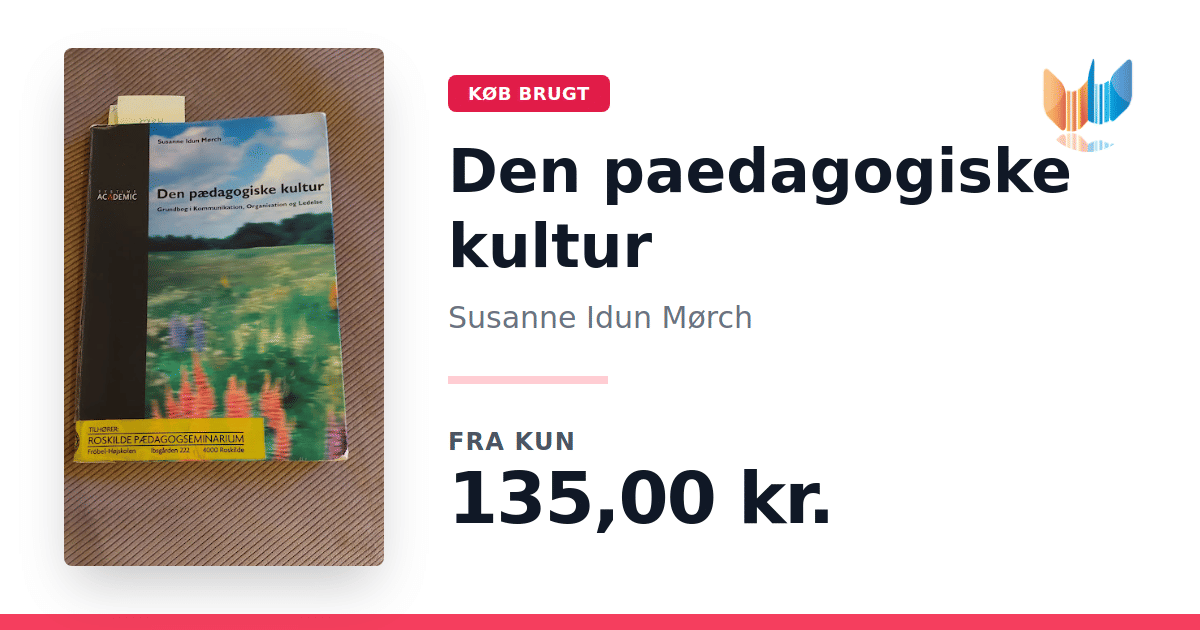 Lige nu kan du købe "Den paedagogiske kultur" af Susanne Idun Mørch til kun 135,00 kr. Bogen du ser her er brugt, og i god stand. Vi har i øjeblikket kun et enkelt eksemplar til salg af "Den paedagogiske kultur", så slå til mens du kan!