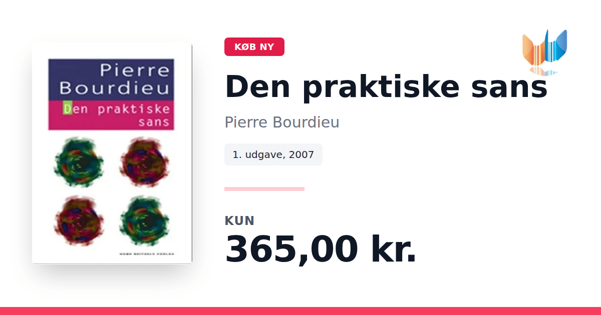 Lige nu kan du købe "Den praktiske sans" af Pierre Bourdieu til kun 365,00 kr. Bogen du ser her er ny, og kan købe gennem vores partner Plusbog.