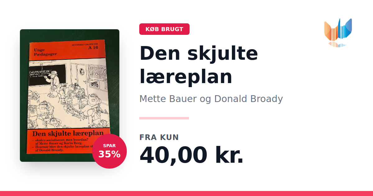 Lige nu kan du købe "Den skjulte læreplan" af Mette Bauer og Donald Broady til kun 62,00 kr. Bogen du ser her er ny, og kan købe gennem vores partner Plusbog.