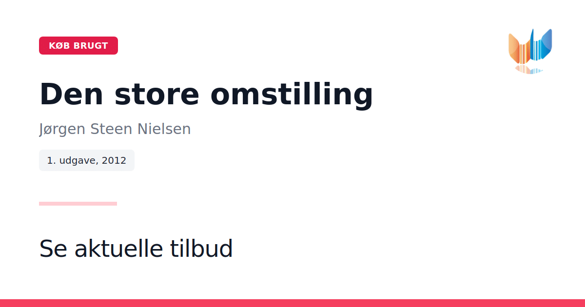 I Den store omstilling udfordrer Jørgen Steen Nielsen den gængse opfattelse af, at den nuværende økonomiske krise udelukkende er en kortvarig og lokal hændelse. Han påpeger i stedet, at vi midt i en global systemkrise ser sammenfiltringen af finansielle, økologiske, råstof- og fødevarekriser, som tilsammen truer med at overskride de naturlige grænser for vækst og udvikling. Med udgangspunkt i processerne op til FNs topmøde Rio+20 i juni 2012, analyserer bogen de strukturelle barrierer og den snæversynede politiske tænkning, som hæmmer en nødvendig overgang til en bæredygtig, grøn økonomi. Jørgen Steen Nielsen skitserer, hvordan et bredt internationalt netværk af økonomer, erhvervsledere og miljøforkæmpere arbejder på at formulere den model, der kan understøtte en ligevægtsøkonomi for fremtiden. På 222 sider præsenterer Den store omstilling en kritisk og tankevækkende undersøgelse af de mange facetter af den globale krise, og den understreger den presserende nødvendighed af en dybtgående omstilling i vores økonomiske system.