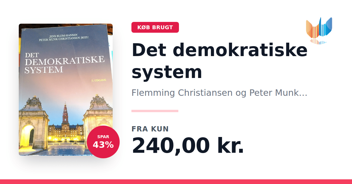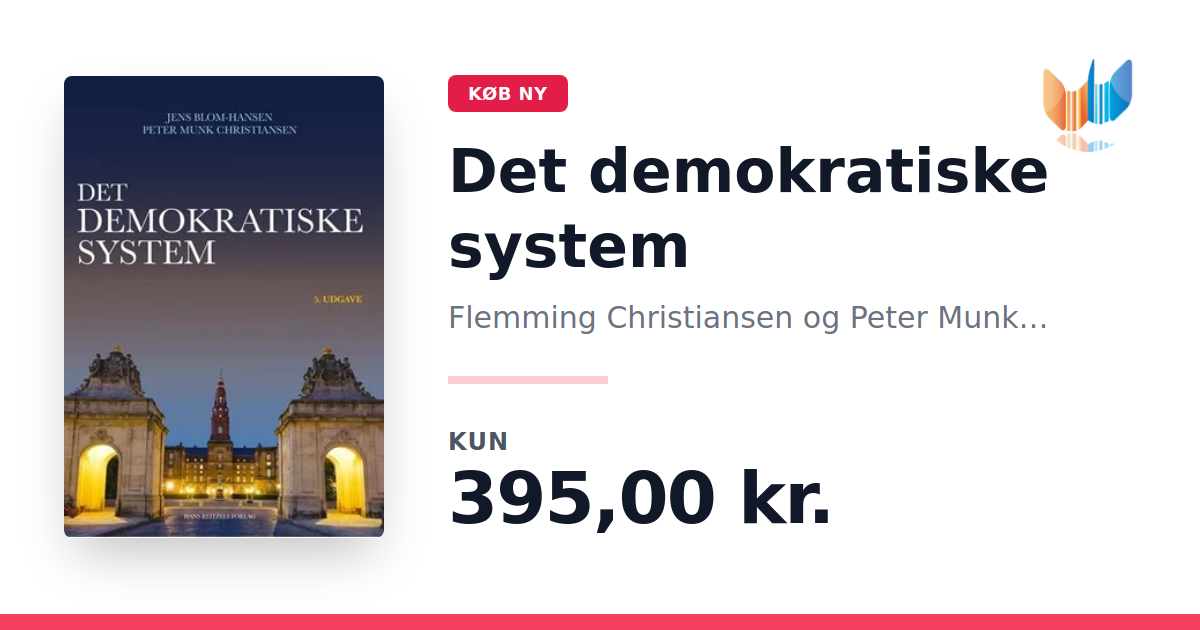 DET DEMOKRATISKE SYSTEM giver en dybdegående introduktion til de centrale institutioner og funktioner i det danske folkestyre. Bogen indgår som en lærebog, der forklarer de væsentligste elementer såsom valgsystemet, partierne, Folketinget, regeringsarbejdet, det administrative system, interesseorganisationer og medierne samt samspillet med EU. I den femte udgave er indholdet grundigt revideret for at afspejle de aktuelle forhold og de skiftende uddannelsesbehov. Desuden er bogen udvidet med et kapitel, der belyser samspillet mellem danske politiske og administrative institutioner og EU’s organer. DET DEMOKRATISKE SYSTEM er derfor ideel for nye studerende inden for statskundskab og forvaltning samt som et bredt opslagsværk på andre uddannelsesretninger.