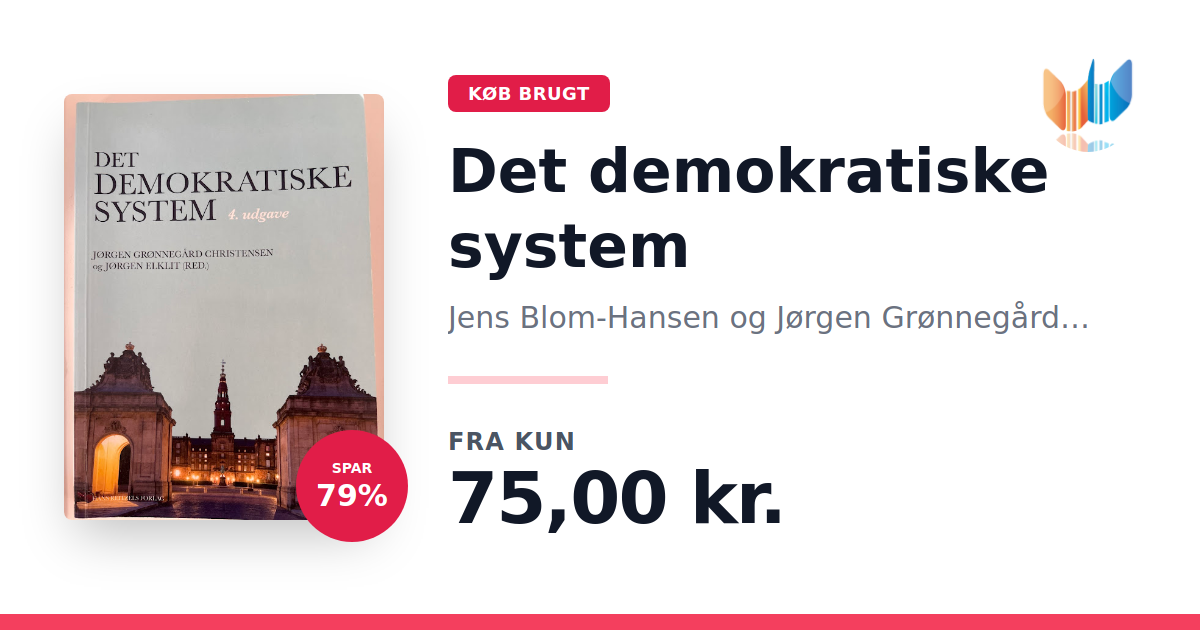 Det demokratiske system giver en indsigtsfuld gennemgang af hjørnestenene i det danske demokrati. Bogen dykker ned i væsentlige elementer som valgsystemet, de politiske partier, det parlamentariske system, den administrative struktur, interesseorganisationer, mediernes rolle og EU's betydning. I 4. udgave er bogens opbygning revideret for at afspejle de nyeste tendenser og undervisningsbehov. Den indeholder et udvidet kapitel om EU's struktur og funktion, hvilket gør den til et oplagt redskab for studerende på statskundskabs- og forvaltningsuddannelserne. Samtidig fungerer den som en alsidig undervisnings- og opslagsbog på tværs af andre uddannelsesretninger.
