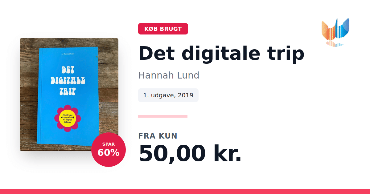 Lige nu kan du købe "Det digitale trip" af Hannah Lund til kun 50,00 kr. Du sparer hele 60% af nyprisen! Bogen du ser her er brugt, og i perfekt stand. Vi har i øjeblikket kun et enkelt eksemplar til salg af "Det digitale trip", så slå til mens du kan!