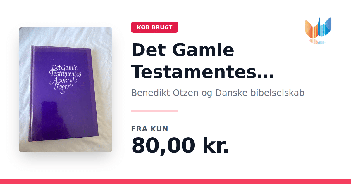 Lige nu kan du købe "Det Gamle Testamentes Apokryfe Bøger" af Benedikt Otzen og Danske bibelselskab til kun 80,00 kr. Bogen du ser her er brugt, og i god stand. Vi har i øjeblikket kun et enkelt eksemplar til salg af "Det Gamle Testamentes Apokryfe Bøger", så slå til mens du kan!
