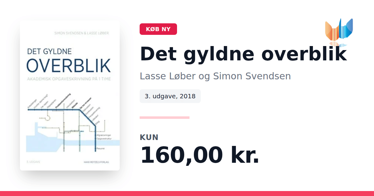 Skal du skrive en akademisk opgave, er Det gyldne overblik vejen frem. Bogen guider dig trin for trin gennem skriveprocessen – lige fra resume til bilag – og sikrer, at du hurtigt får det gode overblik over alle opgavens elementer. Med en struktureret tilgang bliver det enkelt at navigere gennem de forskellige dele af opgaven, så du med ro i sindet kan fokusere på indholdet. I denne udgave er der lagt ekstra vægt på et tydeligt metodeafsnit. Videnskabsteori-delen er blevet yderligere præciseret, og forfatterne har tilføjet adskillige eksempler samt tips og tricks – blandt andet til, hvordan du bedst undgår, at smartphonen forstyrrer din skriveproces. Få svar på, hvordan du formulerer en stærk problemstilling, hvorfor videnskabsteorien er vigtig, og hvad der præcist skal med i metodeafsnittet.