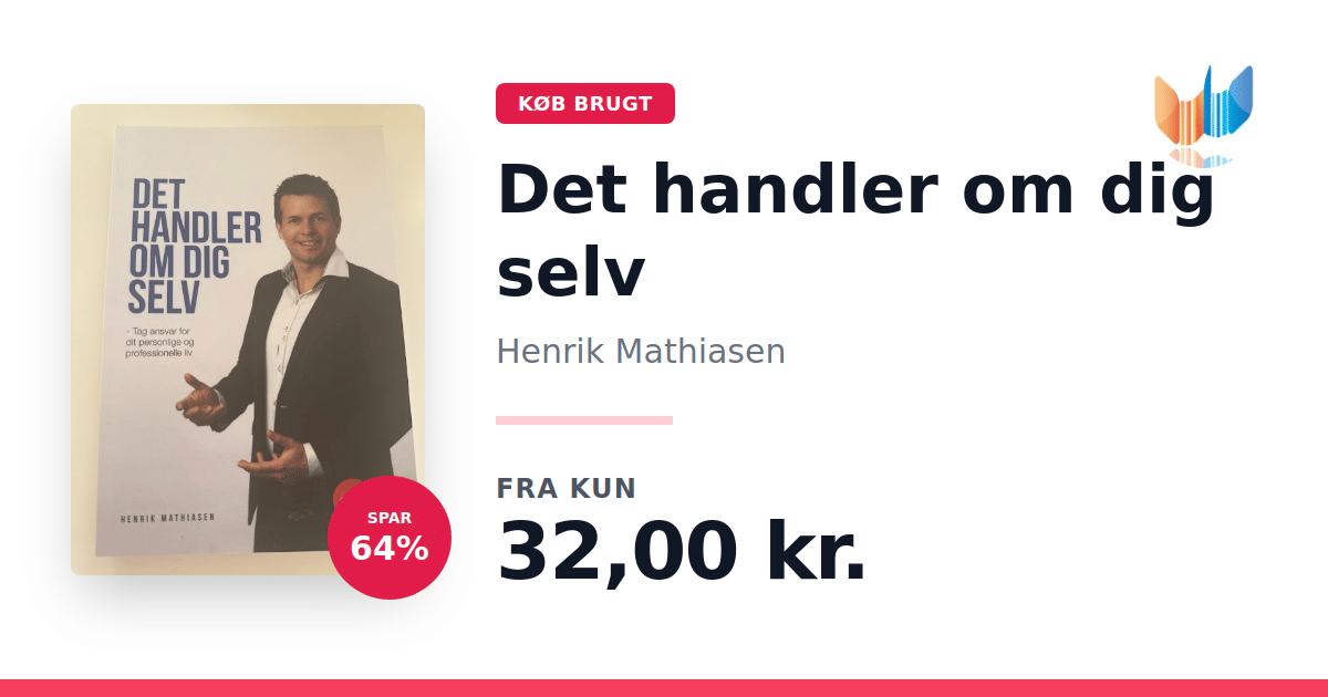 Lige nu kan du købe "Det handler om dig selv" af Henrik Mathiasen til kun 32,00 kr. Du sparer hele 64% af nyprisen! Bogen du ser her er brugt, og i perfekt stand. Vi har i øjeblikket kun et enkelt eksemplar til salg af "Det handler om dig selv", så slå til mens du kan!