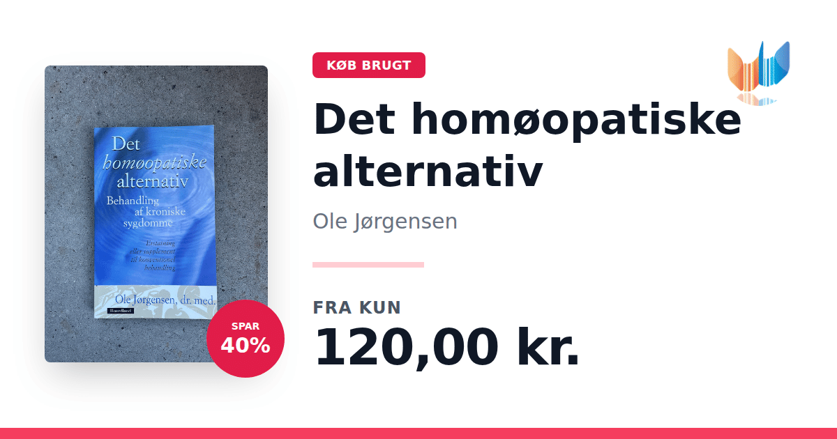 Lige nu kan du købe "Det homøopatiske alternativ" af Ole Jørgensen til kun 120,00 kr. Du sparer hele 40% af nyprisen! Bogen du ser her er brugt, og i perfekt stand. Vi har i øjeblikket kun et enkelt eksemplar til salg af "Det homøopatiske alternativ", så slå til mens du kan!