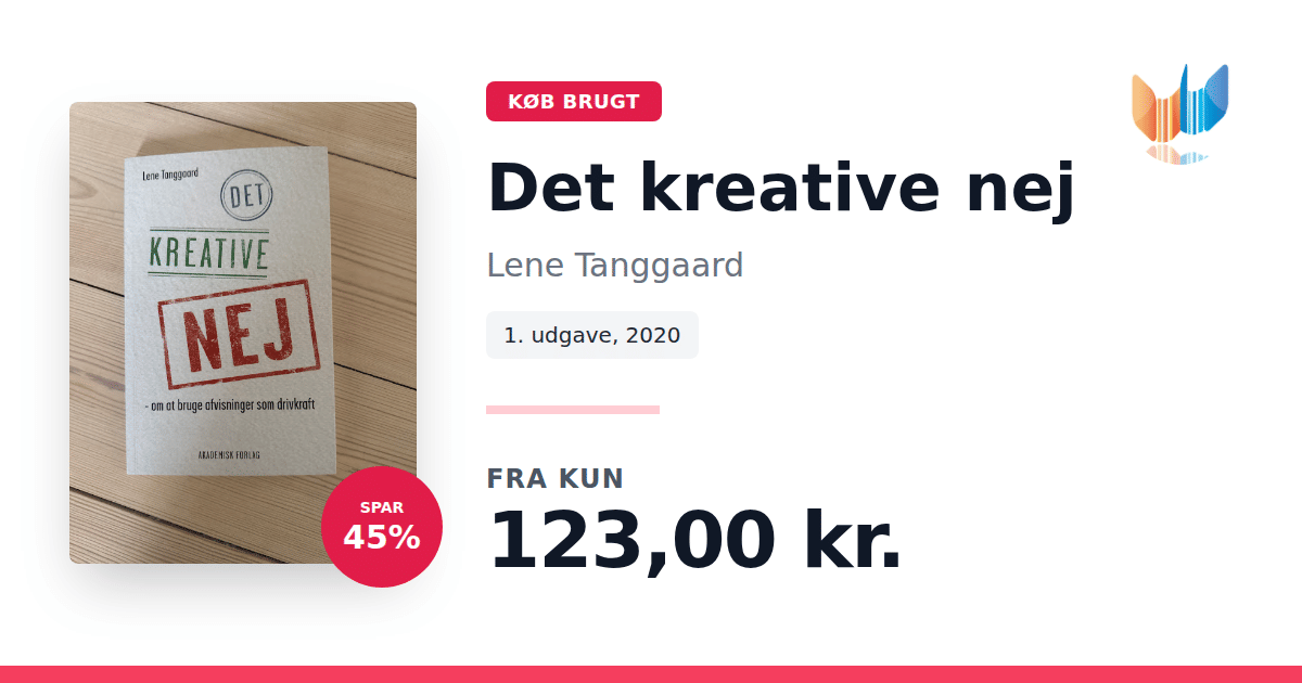 Lige nu kan du købe "Det kreative nej" af Lene Tanggaard til kun 123,00 kr. Du sparer hele 45% af nyprisen! Bogen du ser her er brugt, og i perfekt stand. Vi har i øjeblikket kun et enkelt eksemplar til salg af "Det kreative nej", så slå til mens du kan!