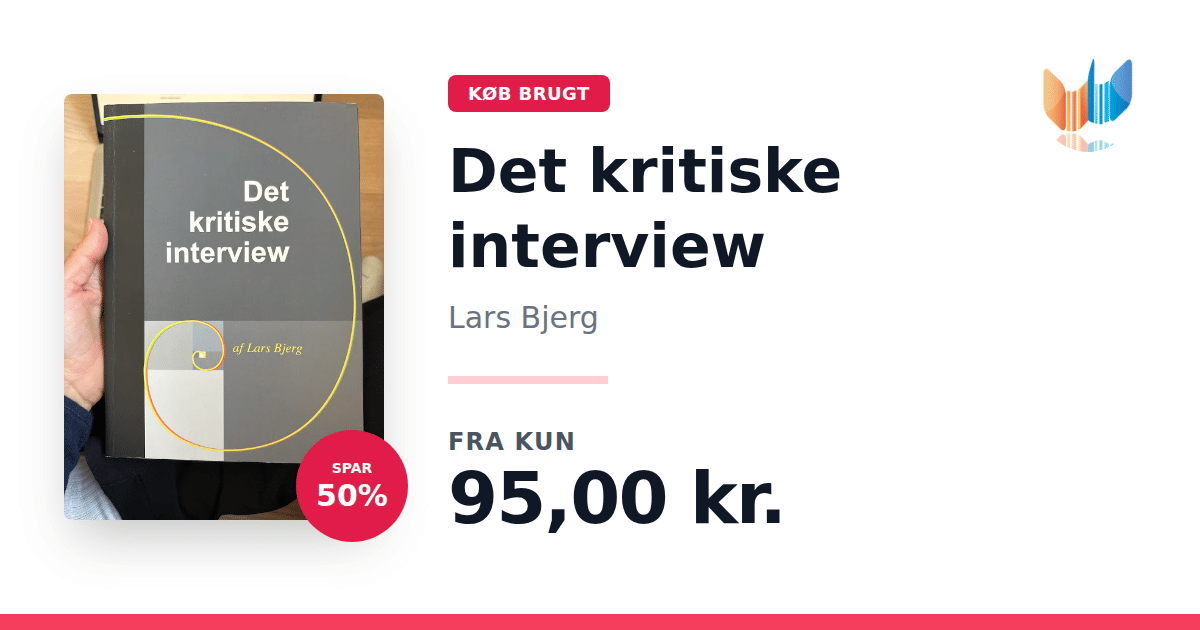 Lige nu kan du købe "Det kritiske interview" af Lars Bjerg til kun 95,00 kr. Du sparer hele 50% af nyprisen! Bogen du ser her er brugt, og i god stand. Vi har i øjeblikket 4 eksemplarer til salg af "Det kritiske interview", så husk at se de forskellige udgaver.