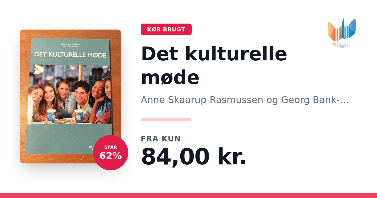 Lige nu kan du købe "Det kulturelle møde" af Anne Skaarup Rasmussen og Georg Bank-Mikkelsen til kun 84,00 kr. Du sparer hele 62% af nyprisen! Bogen du ser her er brugt, og i perfekt stand. Vi har i øjeblikket kun et enkelt eksemplar til salg af "Det kulturelle møde", så slå til mens du kan!