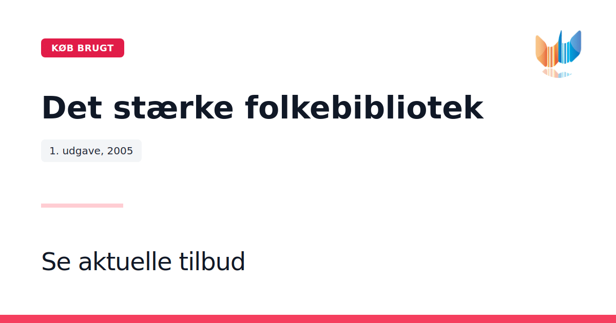 "Det stærke folkebibliotek" (2005) byder på en grundig og tankevækkende indsigt i, hvordan biblioteker fungerer som samfundets kulturelle og demokratiske hjerte. Med 271 sider i denne første udgave præsenterer Danmarks Biblioteksforening Danmarks Bibliotekssko en seriøs refleksion over bibliotekets betydning og styrke i det moderne samfund. Bogen undersøger de mange facetter af folkebibliotekets rolle – fra dets funktion som informationsknudepunkt til dets evne til at skabe livskraftige mødesteder for alle borgere. Ved at kombinere teoretiske perspektiver med aktuelt samfundskritiske vinkler, fremstår værket som en nødvendig læsning for dem, der ønsker at forstå den dynamik, der former vores offentlige kulturliv.