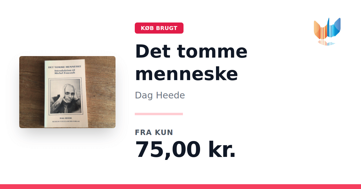 Lige nu kan du købe "Det tomme menneske" af Dag Heede til kun 75,00 kr. Bogen du ser her er brugt, og i god stand. Vi har i øjeblikket kun et enkelt eksemplar til salg af "Det tomme menneske", så slå til mens du kan!
