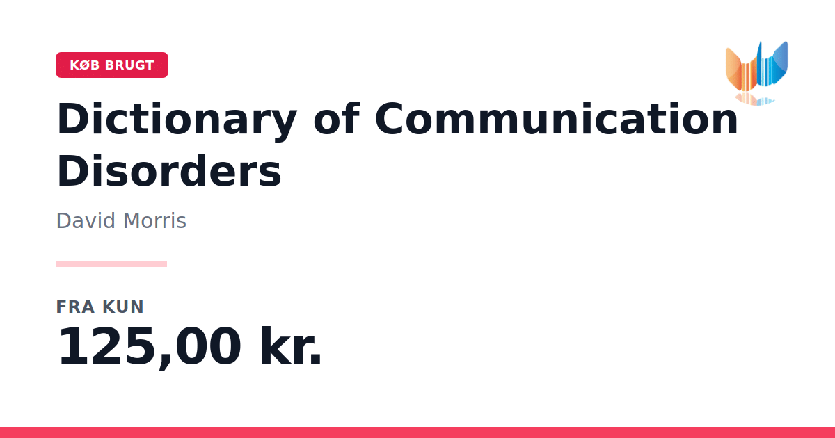 Lige nu kan du købe "Dictionary of Communication Disorders" af David Morris til kun 125,00 kr. Du sparer hele 75% af nyprisen! Bogen du ser her er brugt, og i perfekt stand. Vi har i øjeblikket kun et enkelt eksemplar til salg af "Dictionary of Communication Disorders", så slå til mens du kan!