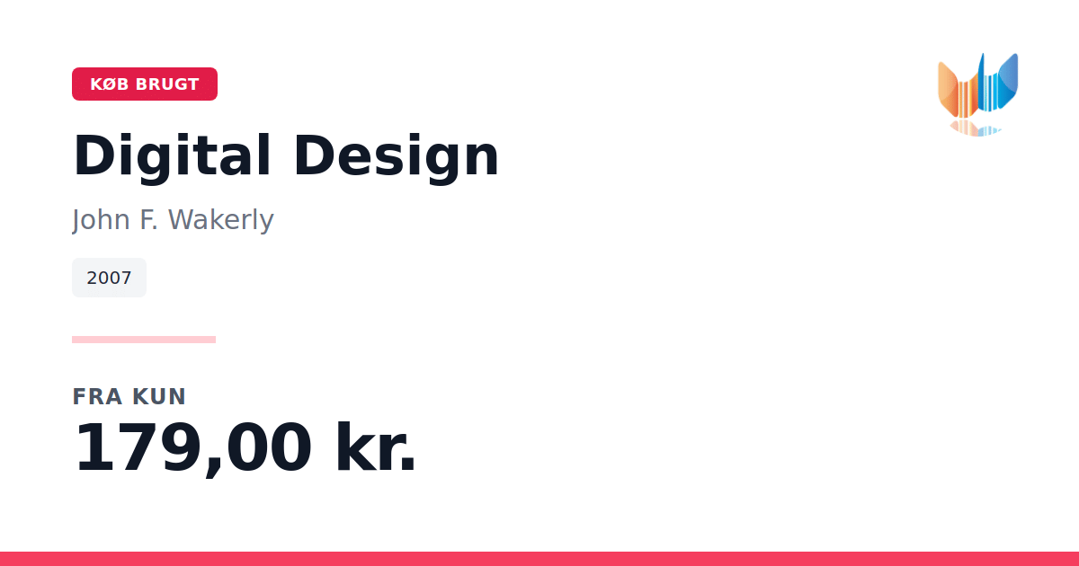 Lige nu kan du købe "Digital Design" af John F. Wakerly til kun 179,00 kr. Bogen du ser her er brugt, og i perfekt stand. Vi har i øjeblikket 3 eksemplarer til salg af "Digital Design", så husk at se de forskellige udgaver.