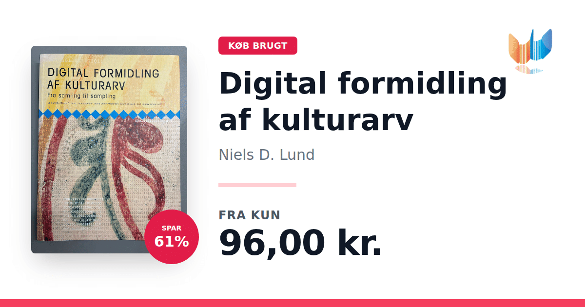 Lige nu kan du købe "Digital formidling af kulturarv" af Niels D. Lund til kun 96,00 kr. Du sparer hele 61% af nyprisen! Bogen du ser her er brugt, og i perfekt stand. Vi har i øjeblikket kun et enkelt eksemplar til salg af "Digital formidling af kulturarv", så slå til mens du kan!