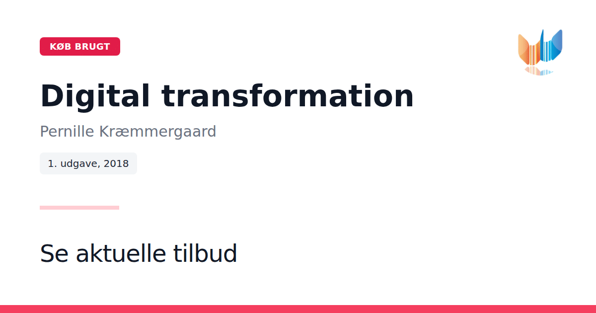 I en tid med hastig digital udvikling kræver de ledende aktører mere end blot ny teknologi – de skal mestre nye måder at tænke og handle på. Digital transformation – 10 evner din organisation skal mestre præsenterer en omfattende tilgang til, hvordan organisationer kan opnå digital modenhed. Bogen understreger vigtigheden af evnen til løbende at tilpasse sig og udvikle løsninger, der både optimerer det eksisterende og baner vejen for innovative tiltag; altid med både kundens og borgerens behov i fokus i et omskifteligt konkurrencepræget landskab. Med mere end 20 års forskning, teoretisk indsigt og praktisk erfaring fra adskillige kurser hos både offentlige organisationer og private virksomheder, leverer Pernille Kræmmergaard et redskab for ledere på alle niveauer. Denne første udgave fra 2018 fra Jurist- og Økonomforbundet fungerer som en håndgribelig guide til den digitale transformationsrejse og giver solid ballast til at møde morgendagens udfordringer med selvtillid og strategisk overblik.
