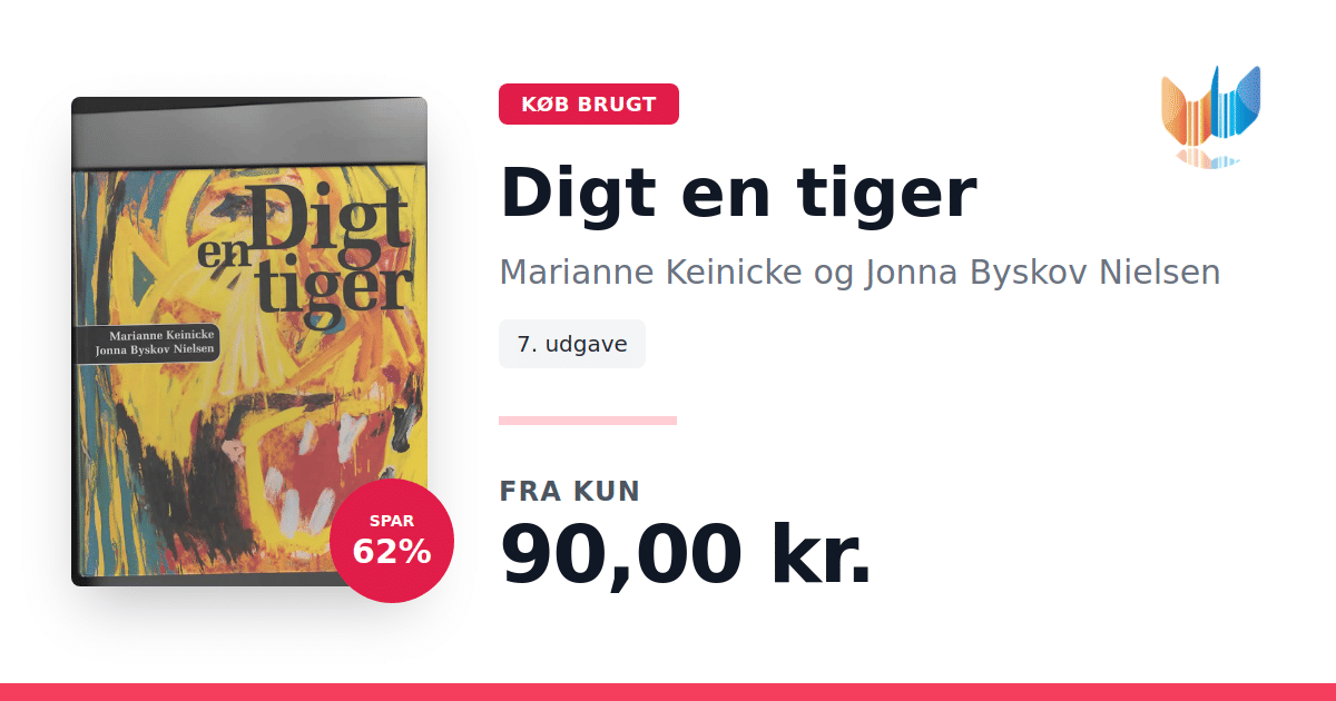 Lige nu kan du købe "Digt en tiger" af Marianne Keinicke og Jonna Byskov Nielsen til kun 90,00 kr. Du sparer hele 62% af nyprisen! Bogen du ser her er brugt, og i perfekt stand. Vi har i øjeblikket kun et enkelt eksemplar til salg af "Digt en tiger", så slå til mens du kan!