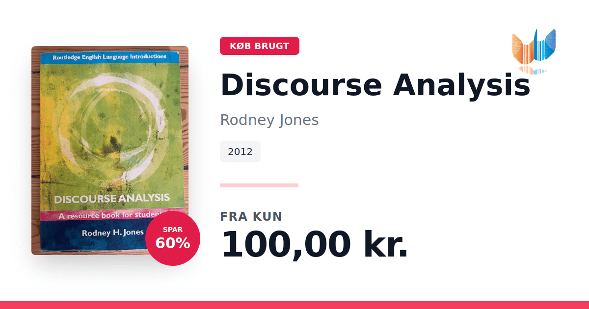 Rodney H. Jones’ Discourse Analysis: A Resource Book for Students (2012) giver et grundigt overblik over diskursanalysens kernebegreber og metoder. Bogen henvender sig særligt til studerende, der ønsker at forstå, hvordan tekster og talt sprog kan undersøges systematisk. Den præsenterer både de klassiske tilgange til tekstanalyse og mundtlig diskurs samt nyere metoder, der fokuserer på teknologisk medieret og multimodal kommunikation. Hver tilgang beskrives med klare eksempler og metodiske redskaber, der viser, hvordan teori omsættes til konkret analyse. Som ressourcebog er den udstyret med talrige øvelser og case-studier, der træner læseren i at anvende de præsenterede teknikker. Discourse Analysis giver dermed et solidt fundament for enhver, der vil arbejde videre med diskursanalyse på akademisk niveau.