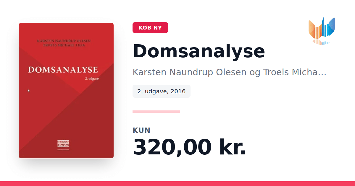 Domsanalyse er et vigtigt redskab for jurister, der skal navigere i domstolens praksis og fastlægge retstilstanden på et givent område. I denne 2. udgave fra Samfundslitteratur, udgivet i 2016, tilbyder Karsten Naundrup Olesen og Troels Michael Lilja en klar og anvendelig introduktion til, hvordan domme kan analyseres både teoretisk og metodisk. Bogen redegør for, hvorfor domme anvendes som retskilde, og hvilke aspekter der påvirker deres juridiske vægt. Med praktiske eksempler på udvalgte domme demonstreres, hvordan den beskrevne metode kan omsættes til konkret praksis. Domsanalyse giver læseren indsigt i fortolkningsmetodernes fundament, og hvordan disse metoder kan bidrage til en nuanceret vurdering af dommens retskildemæssige betydning. Denne bog er en uvurderlig håndbog for alle, der ønsker at udvikle deres evne til at foretage en grundig domsanalyse.