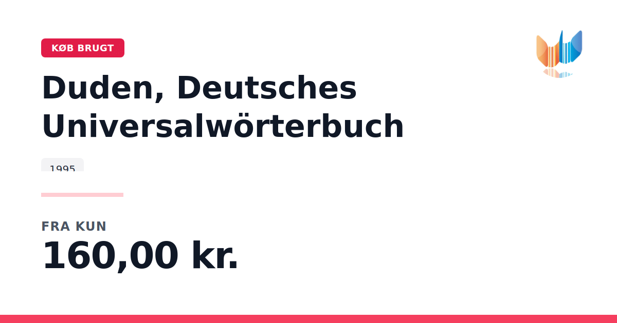 Lige nu kan du købe "Duden, Deutsches Universalwörterbuch" til kun 160,00 kr. Bogen du ser her er brugt, og i perfekt stand. Vi har i øjeblikket kun et enkelt eksemplar til salg af "Duden, Deutsches Universalwörterbuch", så slå til mens du kan!