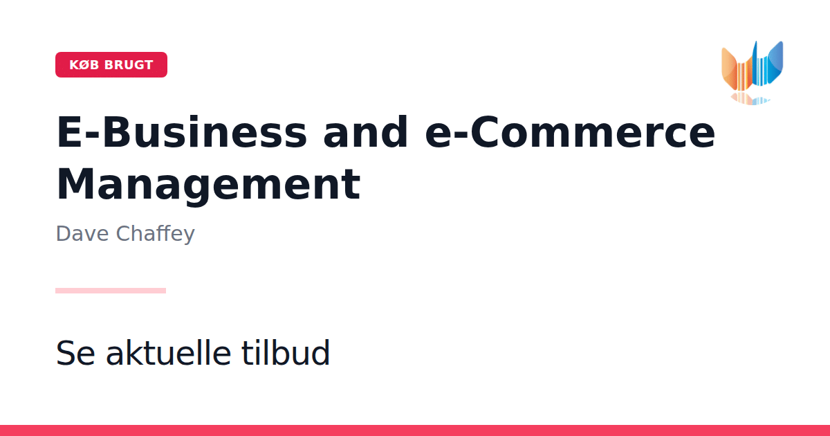 E-Business and e-Commerce Management: Strategy, Implementation and Practice af Dave Chaffey er en autoritativ lærebog, der udkom på Pearson Education i 2011. Med sine 768 sider i paperback-format giver den en grundig indføring i både teori og praksis bag e-business og e-handel. Chaffey, der både forelæser og konsulterer inden for feltet, kombinerer teknisk indsigt med ledelsesmæssige overvejelser. Bogen behandler strategiske modeller, implementeringsprocesser og praktiske værktøjer, krydret med internationale eksempler og levende cases fra den virkelige verden. Skrevet til både bachelor- og kandidatstuderende samt erhvervsledere, fungerer denne lærebog som en uundværlig kilde til at forstå, udvikle og optimere digitale forretningsstrategier. Den er det ideelle redskab til at følge med i den hastige udvikling inden for teknologi, strategi og implementering.