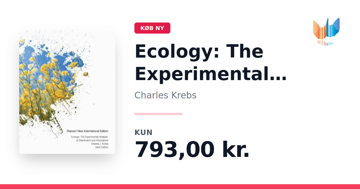Lige nu kan du købe "Ecology: The Experimental Analysis of Distribution and Abundance" af Charles Krebs til kun 793,00 kr. Bogen du ser her er ny, og kan købe gennem vores partner Plusbog.