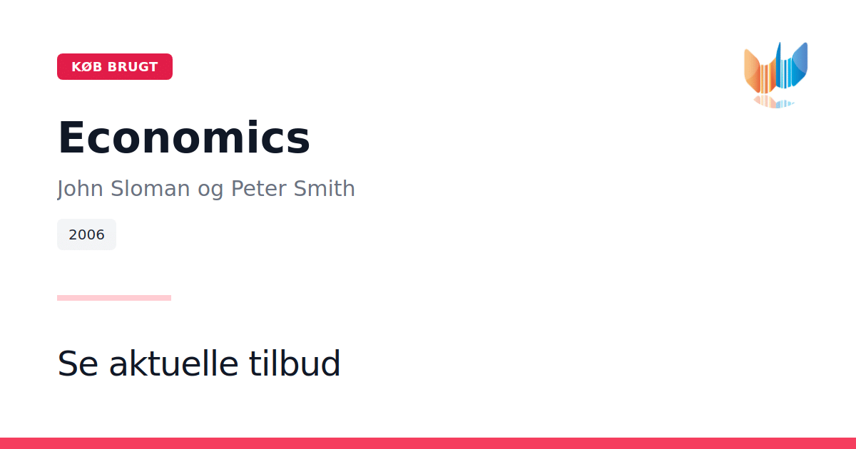 Economics giver en overskuelig og grundig indføring i såvel mikroøkonomi som makroøkonomi set gennem et europæisk perspektiv. Gennem klare forklaringer og nøje udvalgte eksempler præsenterer John Sloman, Peter Smith og Mark Sutcliffe de centrale modeller og teorier, der danner fundamentet for økonomisk analyse. Derudover introducerer bogen de vigtigste EU-institutioner og deres politiske rammer, så læseren forstår, hvordan beslutninger træffes og implementeres på tværs af medlemslandene. Med sine 294 sider i paperback-udgave fra 2006 fungerer Economics som et solidt udgangspunkt for alle studerende, der ønsker at opbygge et solidt kendskab til moderne økonomi.