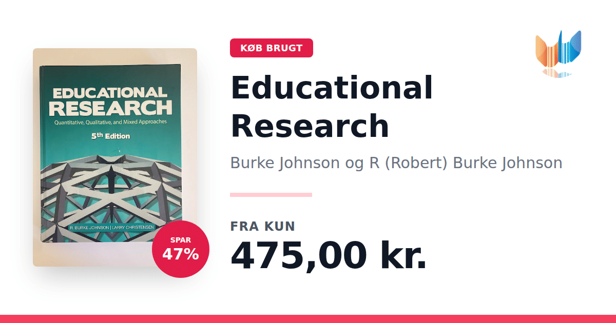 Lige nu kan du købe "Educational Research" af Burke Johnson og R (Robert) Burke Johnson til kun 475,00 kr. Du sparer hele 47% af nyprisen! Bogen du ser her er brugt, og i perfekt stand. Vi har i øjeblikket kun et enkelt eksemplar til salg af "Educational Research", så slå til mens du kan!