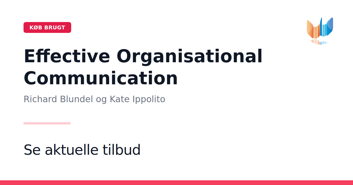 Effective Organisational Communication: Perspectives, Principles and Practices af Richard Blundel og Kate Ippolito er en grundig og tilgængelig indføring i, hvordan effektiv kommunikation skabes og udvikles i en ledelseskontekst. Med et kritisk blik udforsker forfatterne kommunikationens rolle i moderne organisationer og giver læseren et solidt teoretisk fundament. Bogen er opdelt i to hoveddele. Første del præsenterer centrale principper, modeller og perspektiver på organisatorisk kommunikation, mens anden del zoomer ind på de praktiske redskaber og metoder, der kan anvendes i daglig ledelses- og teamkommunikation. Med cases, øvelser og konkrete eksempler illustrerer forfatterne, hvordan strategisk planlægning og målrettet formidling kan styrke samarbejde, forandringsprocesser og intern dialog. Hvert kapitel afsluttes med refleksionsspørgsmål og handlingsanvisninger, der udfordrer læseren til at omsætte teori til praksis. Denne paperback-udgave fra Pearson Education (2008) på 452 sider henvender sig til både studerende på ledelses- og kommunikationsuddannelser og praktikere, der ønsker at optimere deres kommunikationskompetencer i organisationssammenhænge.