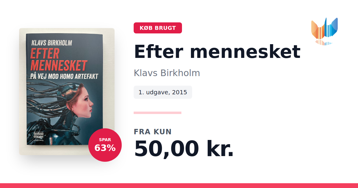 Lige nu kan du købe "Efter mennesket" af Klavs Birkholm til kun 50,00 kr. Du sparer hele 63% af nyprisen! Bogen du ser her er brugt, og i perfekt stand. Vi har i øjeblikket kun et enkelt eksemplar til salg af "Efter mennesket", så slå til mens du kan!