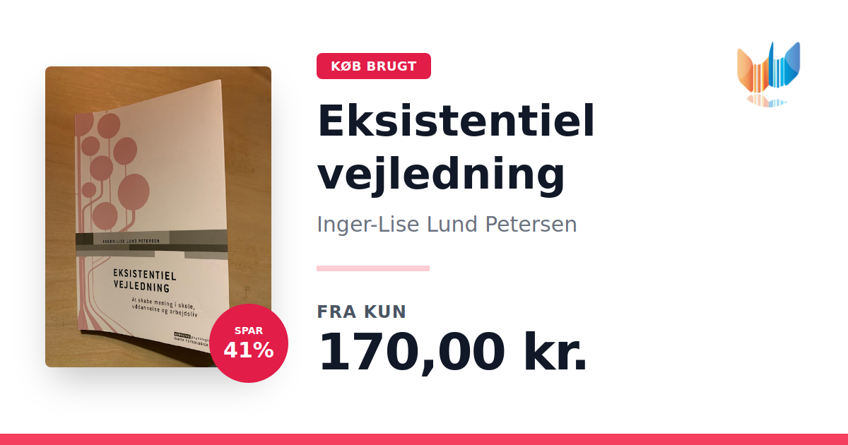 Lige nu kan du købe "Eksistentiel vejledning" af Inger-Lise Lund Petersen til kun 170,00 kr. Du sparer hele 41% af nyprisen! Bogen du ser her er brugt, og i god stand. Vi har i øjeblikket kun et enkelt eksemplar til salg af "Eksistentiel vejledning", så slå til mens du kan!