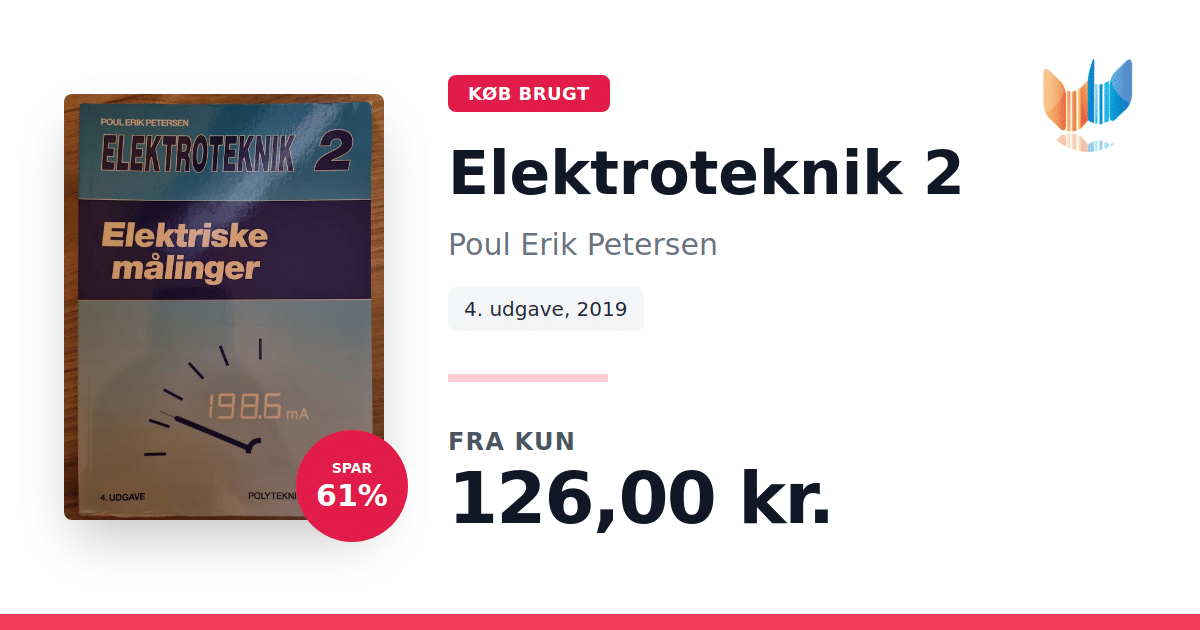 Lige nu kan du købe "Elektroteknik 2" af Poul Erik Petersen til kun 126,00 kr. Du sparer hele 61% af nyprisen! Bogen du ser her er brugt, og i perfekt stand. Vi har i øjeblikket 2 eksemplarer til salg af "Elektroteknik 2", så husk at se de forskellige udgaver.