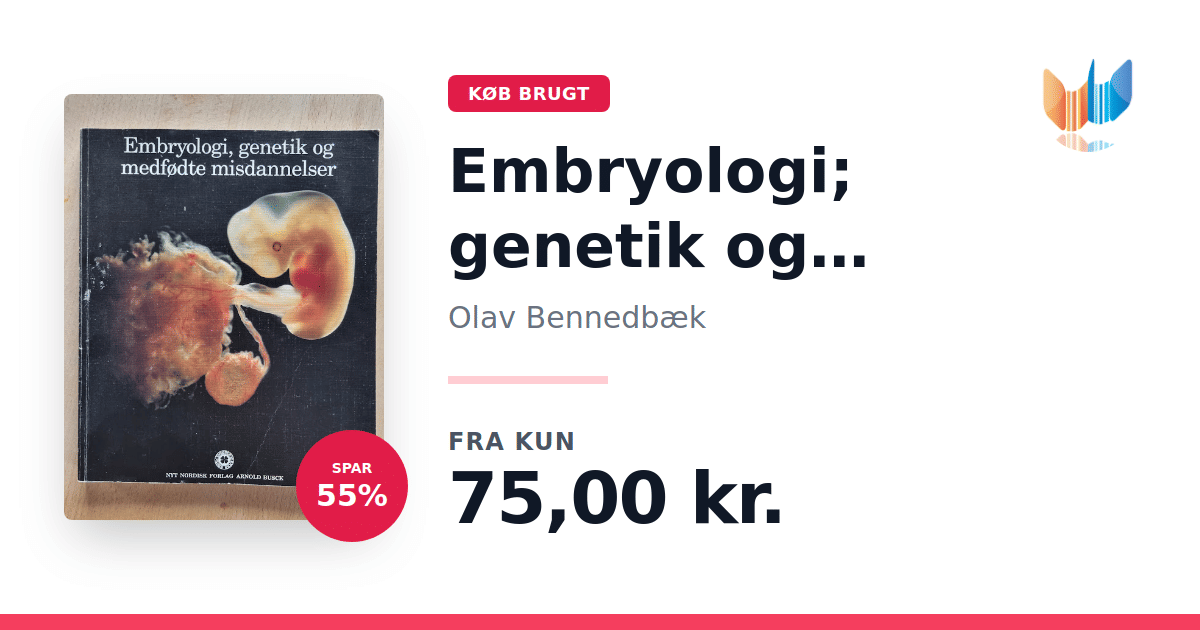 Lige nu kan du købe "Embryologi; genetik og medfødte misdannelser" af Olav Bennedbæk til kun 75,00 kr. Du sparer hele 55% af nyprisen! Bogen du ser her er brugt, og i god stand. Vi har i øjeblikket kun et enkelt eksemplar til salg af "Embryologi; genetik og medfødte misdannelser", så slå til mens du kan!