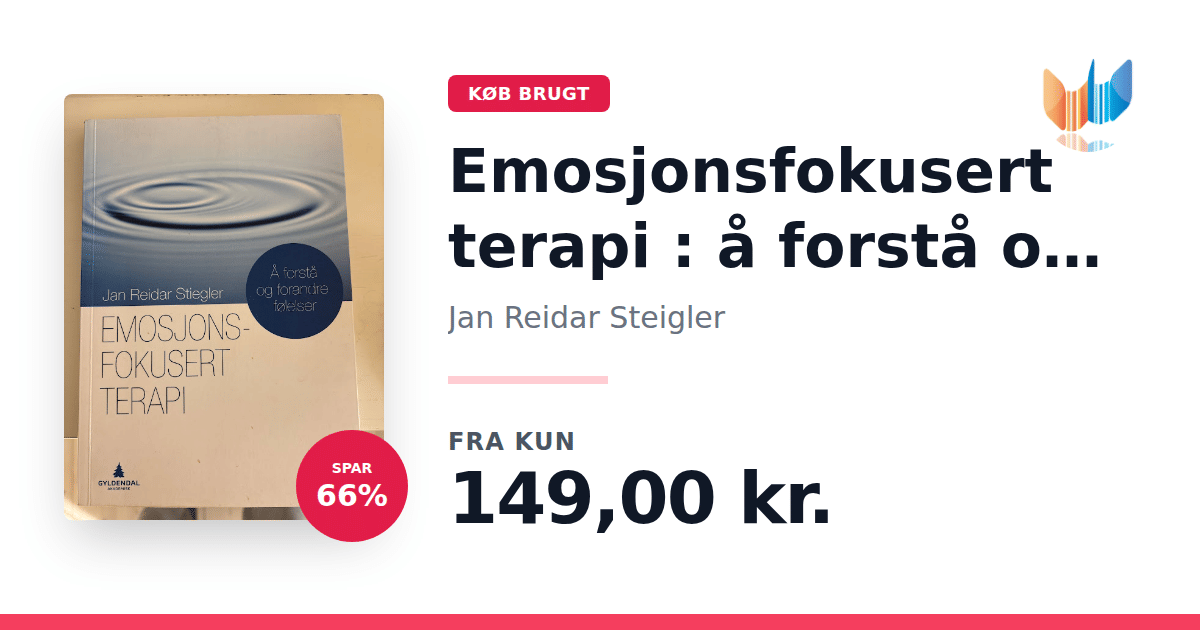 Lige nu kan du købe "Emosjonsfokusert terapi : å forstå og forandre følelser" af Jan Reidar Steigler til kun 149,00 kr. Du sparer hele 66% af nyprisen! Bogen du ser her er brugt, og i perfekt stand. Vi har i øjeblikket kun et enkelt eksemplar til salg af "Emosjonsfokusert terapi : å forstå og forandre følelser", så slå til mens du kan!