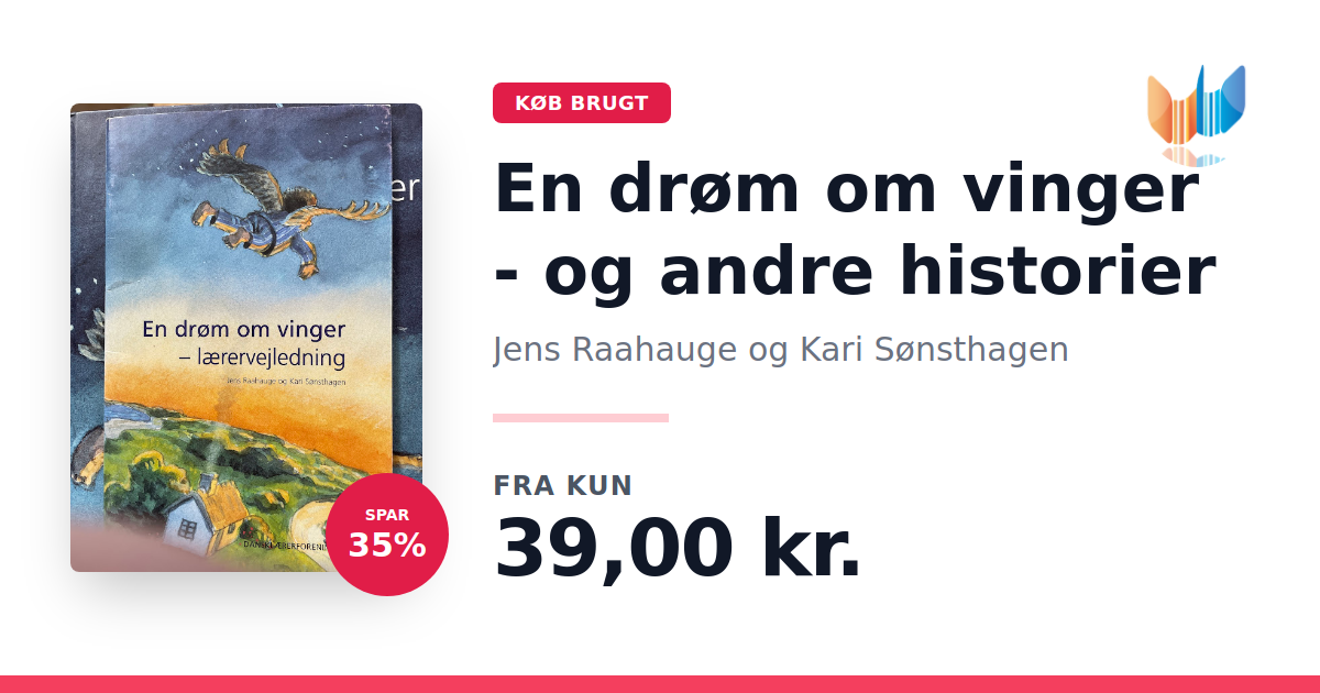 Lige nu kan du købe "En drøm om vinger - og andre historier" af Jens Raahauge og Kari Sønsthagen til kun 39,00 kr. Du sparer hele 35% af nyprisen! Bogen du ser her er brugt, og i god stand. Vi har i øjeblikket kun et enkelt eksemplar til salg af "En drøm om vinger - og andre historier", så slå til mens du kan!