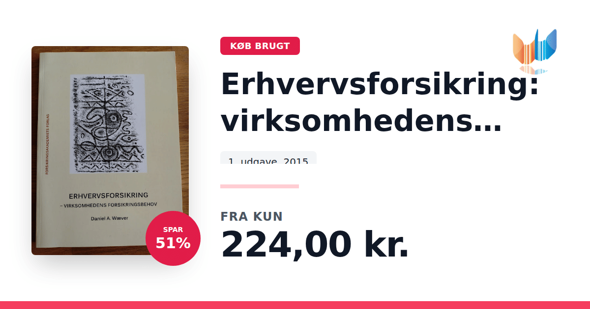 Lige nu kan du købe "Erhvervsforsikring: virksomhedens forsikringsbehov" til kun 224,00 kr. Du sparer hele 51% af nyprisen! Bogen du ser her er brugt, og i god stand. Vi har i øjeblikket kun et enkelt eksemplar til salg af "Erhvervsforsikring: virksomhedens forsikringsbehov", så slå til mens du kan!